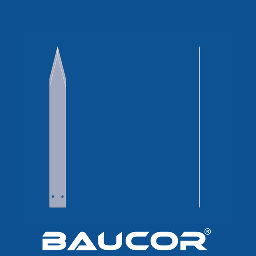 $0.0012'' Lang, glad, puntig blad Lengte: 12" x Breedte: 1,5" x Dikte: 1/16" x Hoogte: 9" (304,8 mm x 38,1 mm x 1,59 mm x 228,6 mm) Dubbele afschuinin...