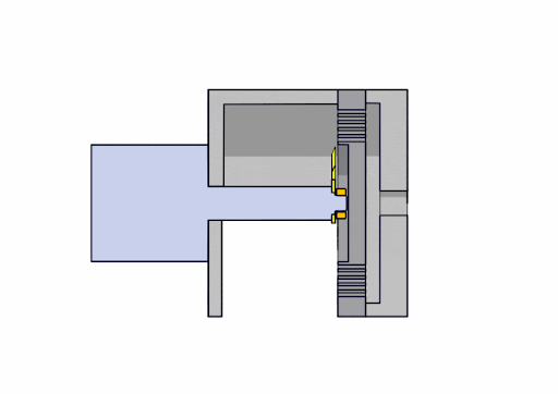 Vervolgens wordt het mes op zijn plaats gehouden door een klemsysteem, zoals een moer.